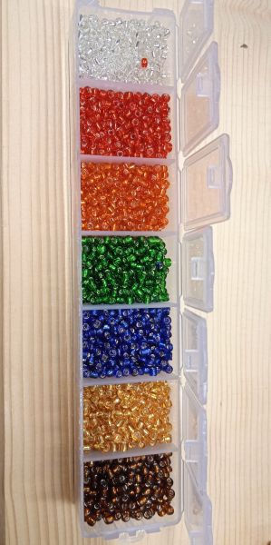 | - v podlouhlé krabičce se 7 okénky je 7 barev drobných rokajlů